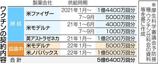 | 契約協議中も含めてワクチン5億6400万回分確保 配送本格化:東京新聞 TOKYO Web (tokyo-np.co.jp) | ||||||||||||||||||||||||||||||||||||||||||