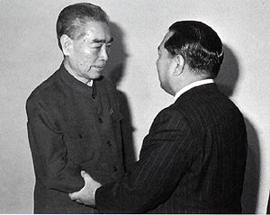 | 建国当初、中国は世界有数の貧乏国家であった。 1杯のスープを家族全員ですすりあうような状況だった。 その当初から国家主席の毛沢東は核兵器開発に血眼になっていた。 大躍進運動も文化大革命もすべては核開発のためである。 ちなみに大躍進運動と文化大革命で中国人民約1億2千万人が犠牲になったと言われている。 数字の上からいえば日本の人口に相当する。 中国共産党は、自国民が何人死のうとも眼中になく、あるのは目的を達するための鉄の意志だけである。 中国の目的は、世界の覇権である。 ところが中国にはお金が無い。 そこでどうしたかというと、日本に目を付けたのである。 当時の中国の首相・周恩来は、一人の民間人を利用し、田中角栄と渡りを付けて国交回復に成功した。 ![]() 【周恩来(左)】 そしてまんまと日本から莫大なODA(政府開発援助)を手に入れることに成功した。 1979年から始まったODAはこれまで3兆円とも、あるいは6兆円とも言われている。 この資金援助を中国は軍事費に転用しているのである。 日本から送った資金は核開発費、ミサイル、軍艦、潜水艦と形が変わり、それがいま日本に向けられているのである。 この手助けをした一人が、和歌山選出の国会議員である。 馬鹿政治屋の一人である。 みごとに中国に踊らされている。 先日、中国国家主席の胡錦濤が来日したが、その国会議員はほんの数分の会談の中で胡錦濤に跪いている。 ちなみに胡錦濤と最も長時間にわたって会談したのは、国会議員ではない。 周恩来が国交回復のために利用した一人の民間人である。 胡錦濤はその民間人に「中国がここまで発展できたのはあなたのおかげです」と謝辞を述べている。 その民間人は大喜びであった。 中国に踊らされている事にも気付かずに…。 |