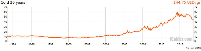 | 金の斧と銀の斧の物語はご存知かと思う。 この「金の斧と銀の斧」のお話のあらすじは次のようなものである。 あるきこりが池のほとりで木を切っていたが、手を滑らせて斧を池に落としてしまう。 困り果てていると、なにやら女性みたいな姿形の何者かが現れて池に潜り、金の斧を拾ってきて、きこりが落としたのはこの金の斧かと尋ねた。 きこりが「それは私のではない」と答えると、その女性みたいな何者かは再び池の底に潜り銀の斧を拾ってきたが、きこりは「それも違う」と答えた。 最後に失くした鉄斧を拾ってくると、きこりは「それが自分の斧だ」と答えた。 女性みたいな何者かはきこりの正直さに感心して、三本すべてをきこりに与えた。 この話を聞いた悪いきこりは、わざと斧を川に落とした。 女性みたいなのが金の斧を拾って同じように尋ねると、そのきこりは「それが自分の斧だ」と答えた。 女性みたいな何者かは呆れて何も渡さずに去り、恥知らずなきこりは自分の斧をも失った。 というものである。 この話の教訓は、正直者には恩賞があり、不正直な者には罰があるというものである。 さて、この「金の斧と銀の斧」をちょっとばかり具体的に検証してみたいと思う。 ![]() この画像の斧を一般的な斧とすると、重量1.6kg、販売価格は約2万円。 柄の部分は木製で、金属部分は鉄製。鉄製の部分だけだと約1.5kg。 平成24年1月時点でのスクラップ鉄の相場はだいたい1kgあたり25円前後。 ということは「25円×1.5kg≒37.5円」。 上記の斧の鉄の部分をスクラップして売って、まあせいぜい40円程度。 斧としての価格は、そのほとんどが製作料といったところであろうか。 さて、ここに上記の鉄の斧と同じ大きさの金の斧と銀の斧があるとする。 金の比重は鉄の約2.5倍。 銀は同じく約1.3倍。 大きさが同じだと仮定すると、金の斧の金の部分は鉄の約2.5倍の重量、つまり約4kg。 同様に銀の斧の銀の部分は約2kg。 2012年1月24日現在の金の相場は近年になく高値が付いていて、1グラムあたり4,150円強、銀のそれは1キログラム当たり81,000円前後。 ![]() 【直近20年の金の相場変動グラフ】 ちなみにプラチナは1グラム3,900円程度、銅は1キログラム当たり650〜700円。 鉄のスクラップは1キログラム当たり25円前後。 金の斧の金の部分は4kg。市場の相場が1グラム4,150円。 ということは「4,150円×4,000グラム≒1,660万円」!! 現在の市場相場にあわせると金の斧の金の部分の価値はなんと1,660万円也!! これを美術品としたとき、その価値はおそらく最低でも2,000万円以上にはなろうかと思われる。 銀の斧なら銀の部分の価値だけで16万2千円也!!。 これも美術品としたときは最低でも20万円以上はするだろうと思われる。 ![]() 【金のプレートが山積にされているが、このプレート1枚が1kg。1kgの時価約415万円。上記画像に映っているだけで一体いくらの価値があるのだろうか??】 つまり、正直者が池から現われた何者かに貰った金の斧と銀の斧の2本の合計金額は、金属の価値としての時価総額にして約1,700万円也!!である。 次に硬度を考えてみる。 最も硬い物質はご存知のとおりダイヤモンド。 このダイヤモンドの硬さを10とすると、鉄は4〜5、銀は2.5〜4、金は2.5〜3となる。 といういことは、硬さは鉄のほうが金や銀よりも1.5倍〜2倍程度の硬さがある。 結論を言えば、鉄ほどの硬さもなく、重さも2.5倍になってしまう金の斧は、きこりにとって全く実用性のない使い物にならない無用の長物となる。 銀の斧の重さは鉄の斧とそんなに変わらないので、いざというときには鉄の斧の代用になるかもしれないが、切れ味は悪くなる。 はてさて、池の中から突然現われた何者からもらった「金の斧と銀の斧」の2本セットをきこりはどうしたのだろうか? あるサイトできこりの賃金を調べたところ、仕事内容は「森林に係わる全ての作業(植栽、下刈り、除伐、枝打ち、間伐)」として、月給約20万円(保険関連・手当て等の特別支給等の細かいことはこの際は考えないとして)。 この賃金で「金の斧と銀の斧」のセットと同じ額である1,700万円を稼ぐとしたら、85ヶ月(7年1ヶ月)かかる。 月給20万円として1,700万円稼ぐのに7年1ヶ月という期間を長いと見るか短いと見るかは個人差があると思うが、私見を述べるなら「たったそんなものか!?」という感想を持つ。 きこりは「金の斧と銀の斧」をどうしたのか? もし売ってしまったとしたらどうなるか? かつて中南米で黄金文明として栄えたインカ帝国やアステカ帝国は、その黄金のためにスペイン人に滅ぼされてしまった。 彼らは侵略者である白人を見て「神の化身」と勘違いし、最上級のおもてなしをして迎えた。 侵略者である白人は彼らの純粋素直な「勘違い」を逆手にとって、有りっ丈の金銀財宝を集めさせ、それを奪っただけでなく、彼らの土地と命を奪ったのであった。 彼らの純粋素直な心があだとなってしまったのだった。 なので、もし「金の斧と銀の斧」を手に入れたことを知られてし